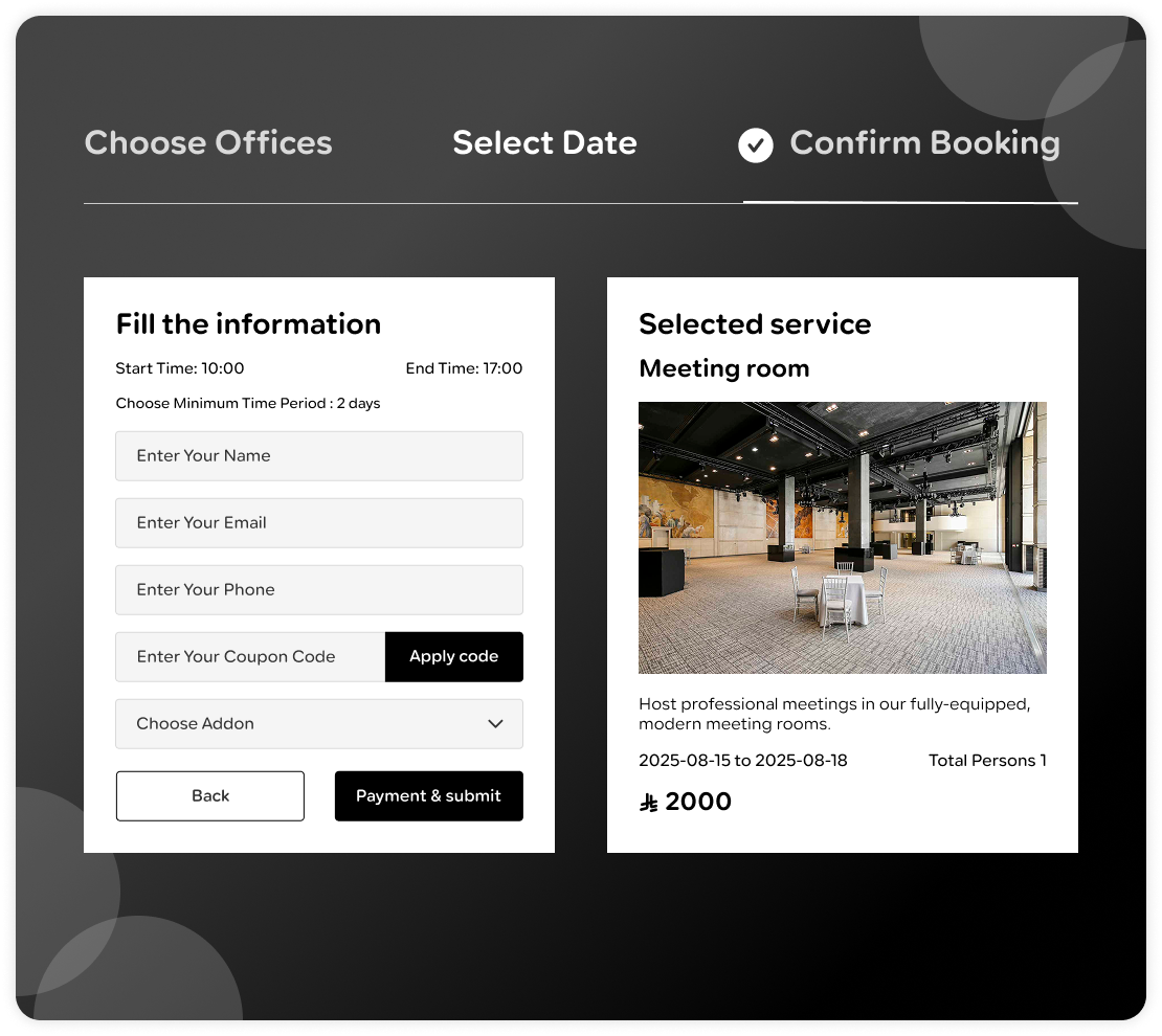 At Messaha, our meeting rooms are crafted to inspire productivity and innovation. Whether you're hosting a strategic discussion, an investor pitch, or a creative brainstorming session, our well-equipped meeting spaces offer the privacy and professionalism your team deserves.