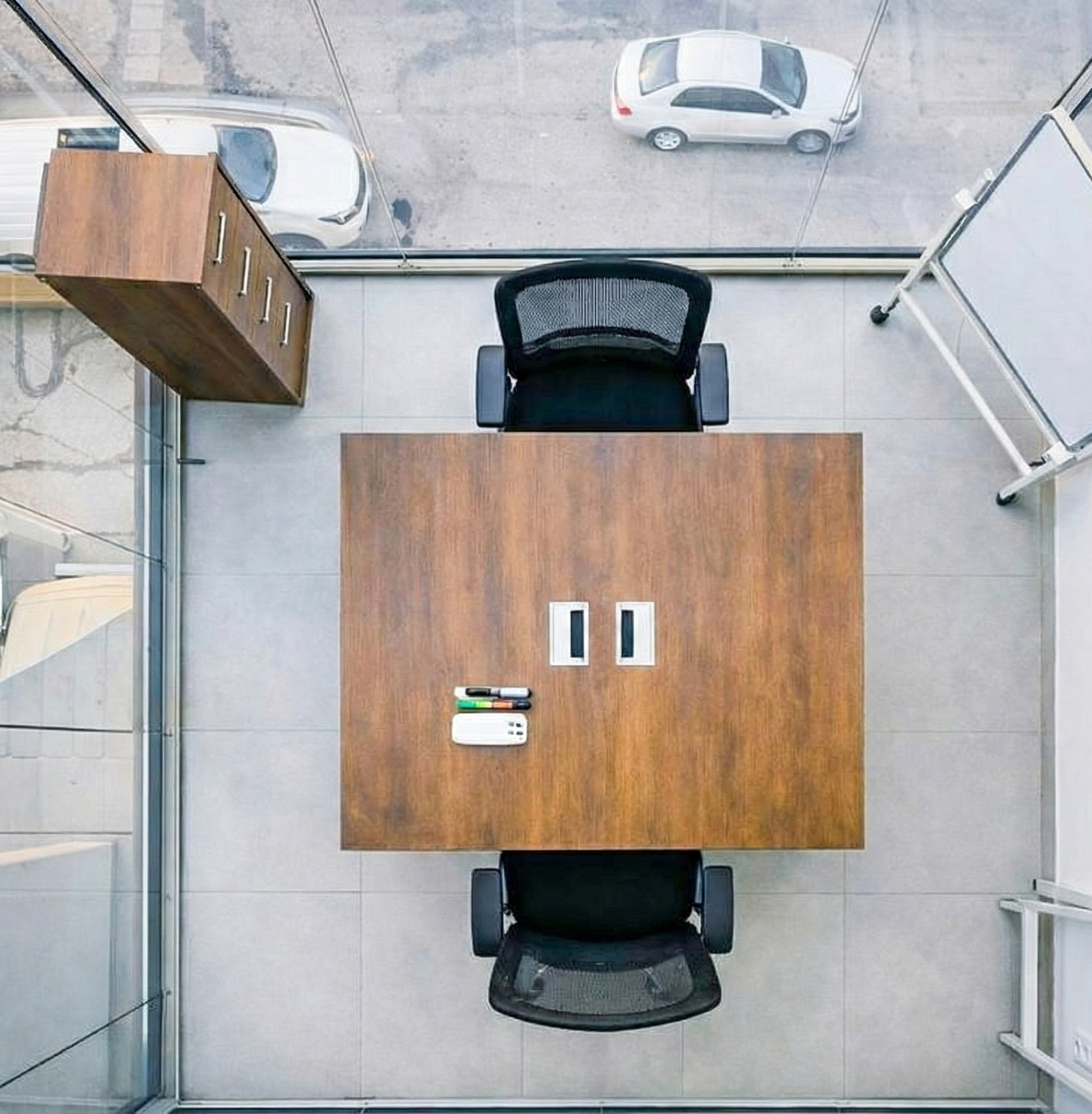 Our meeting rooms are furnished with modern tables, premium chairs, and a crisp, clean design—creating the ideal atmosphere for pitches, strategy sessions, and client presentations. The space is both functional and elegant, offering a polished setting for your most important discussions.