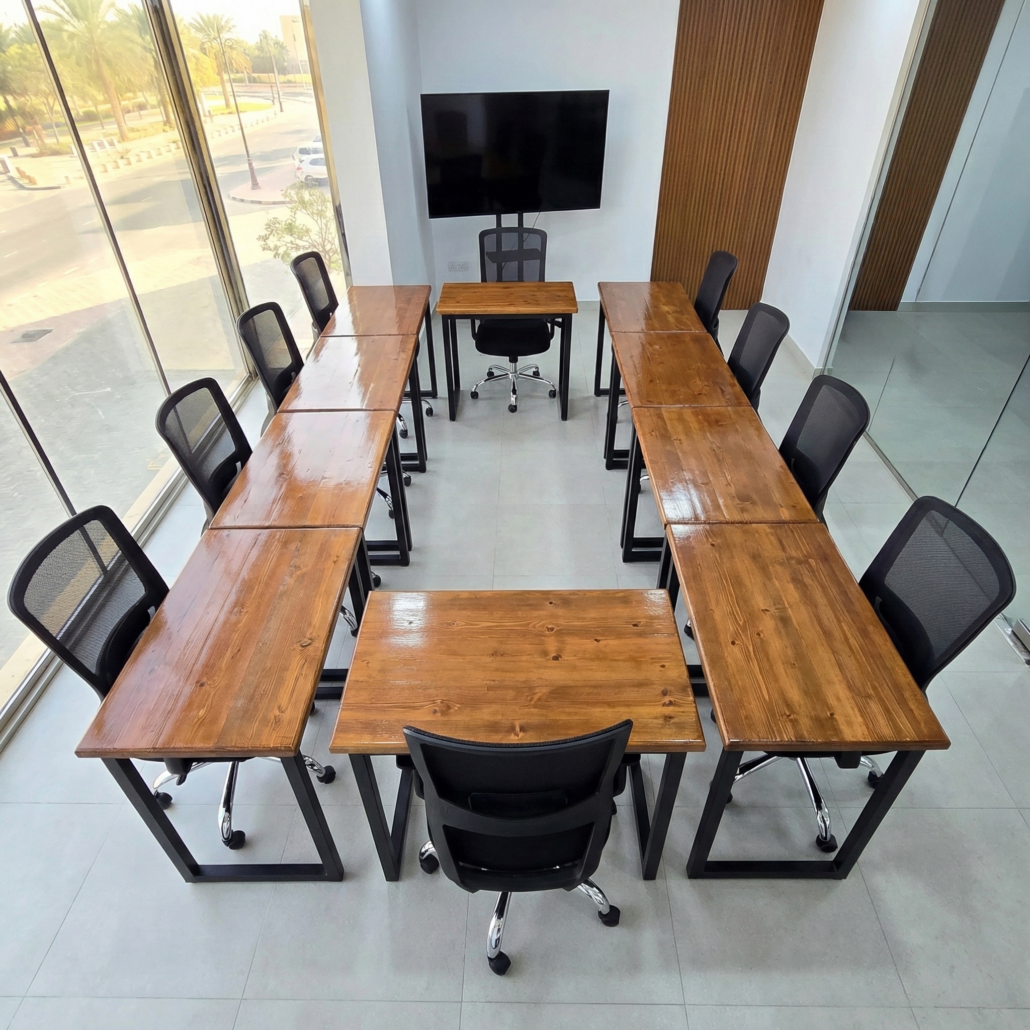 Our training rooms provide a bright, motivating environment tailored for group learning, hands-on workshops, and educational sessions. Each room is arranged with quality furniture, spacious desks, and clear sightlines for smooth communication and instruction.