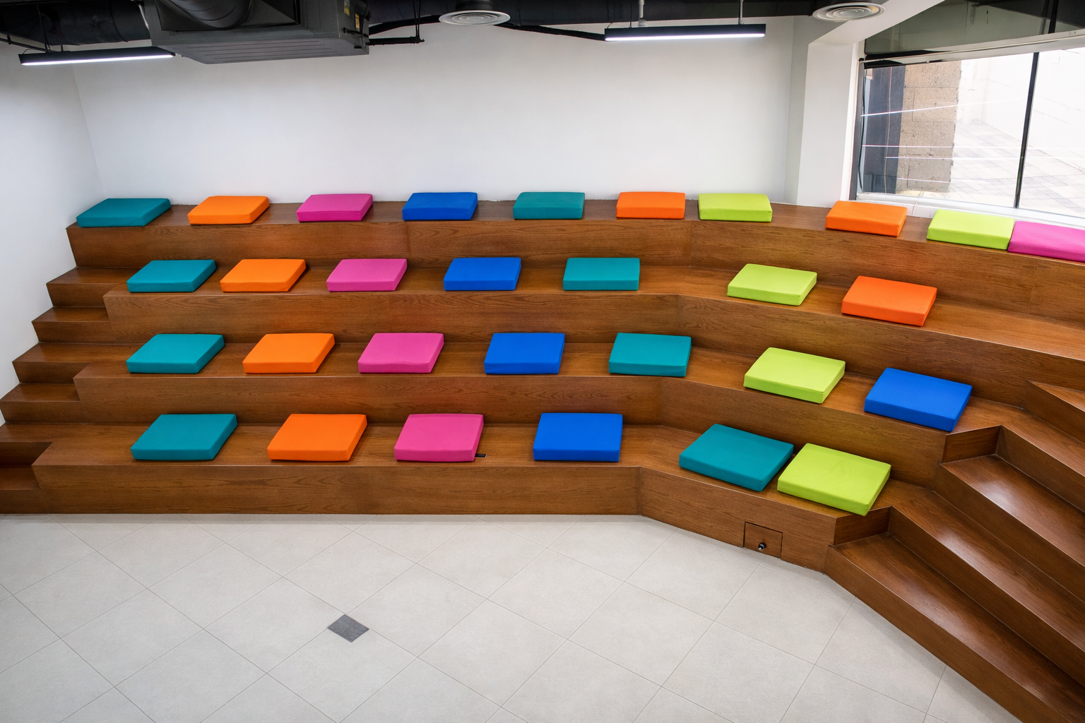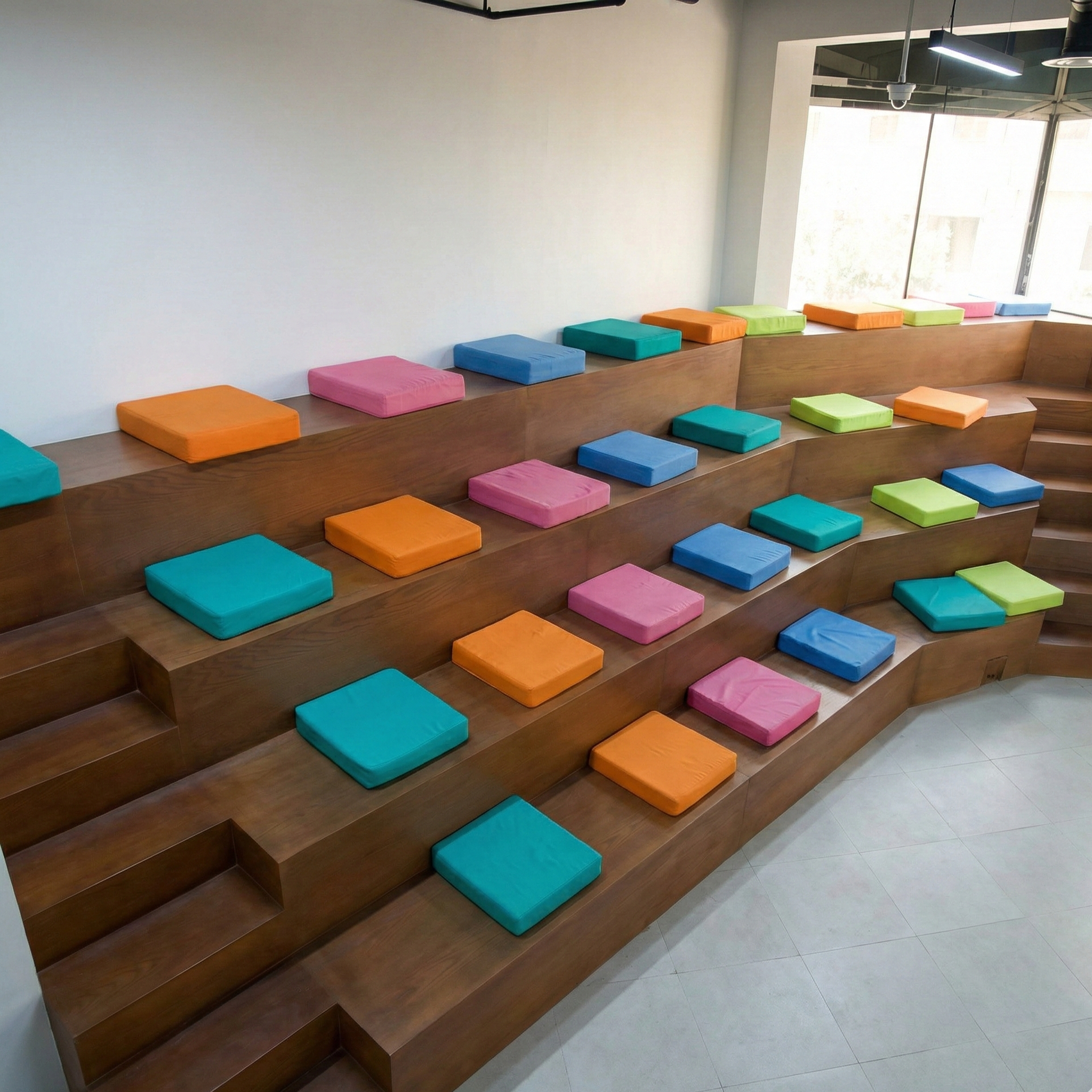 The Stage is a signature space at Messaha—designed with tiered seating, warm colors, and a welcoming atmosphere perfect for storytelling, presentations, and community conversations. It’s a dynamic environment that brings people together to learn, discuss, and inspire.